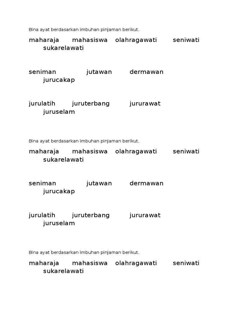 Bina Ayat Berdasarkan Imbuhan Pinjaman Berikut Pdf